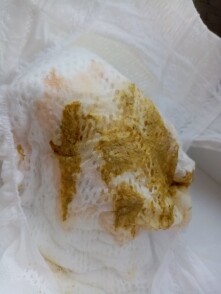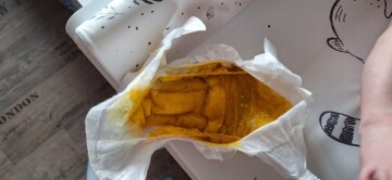 Dobrý den paní doktorko, chtěla bych se zeptat ohledně řidší stolice u měsíčního syna. Obrázek posílám v příloze. Stolice je jednou za den, zdá se mi řidší žluto-oranžové barvy, je lepkavější (s příměsí hlenu asi). Prosím o radu, jestli je tato stolice normální. Miminko je spokojené, jen nás trápila zadní rýma a trpíme na prdíky (nahříváme, cvičíme a masírujeme bříško).